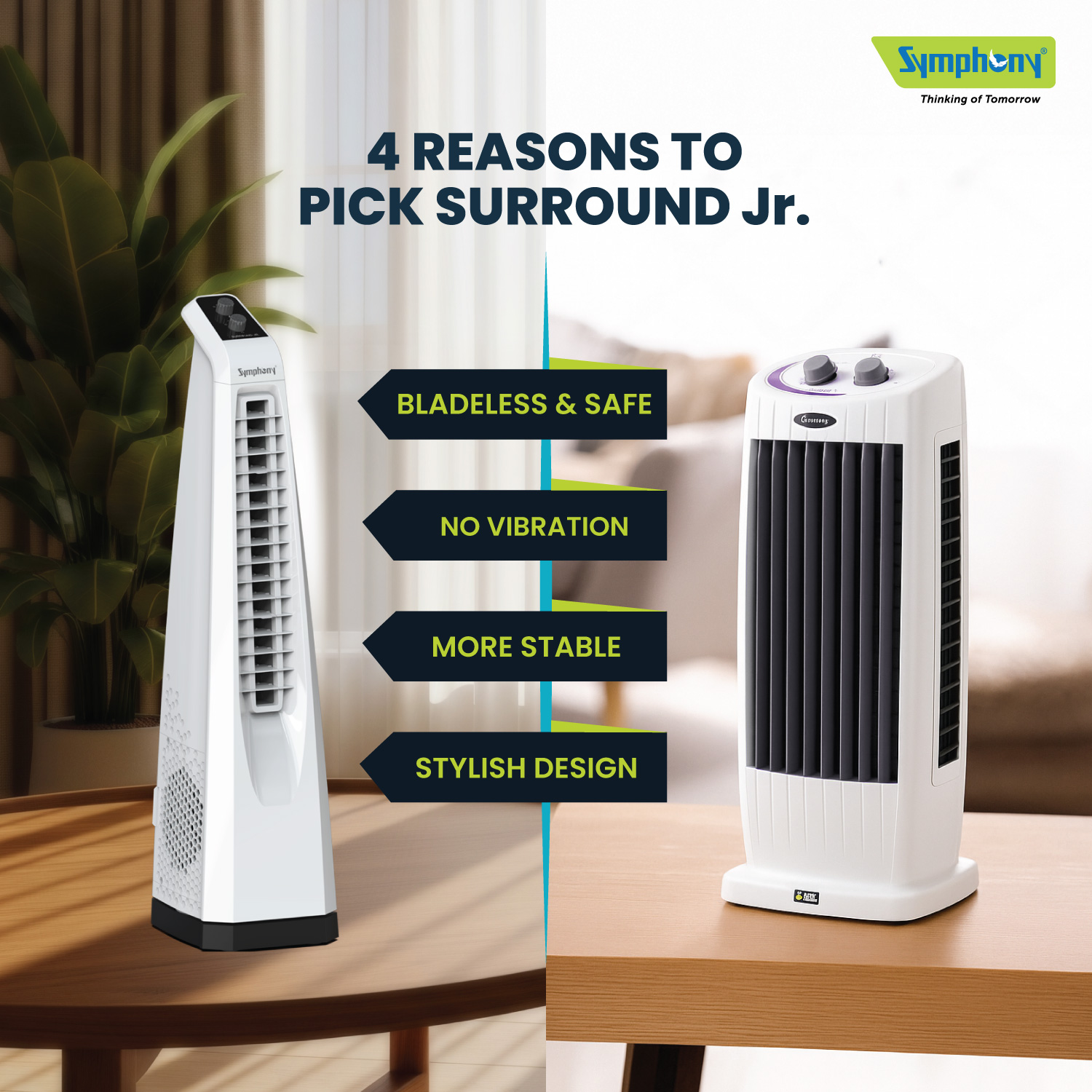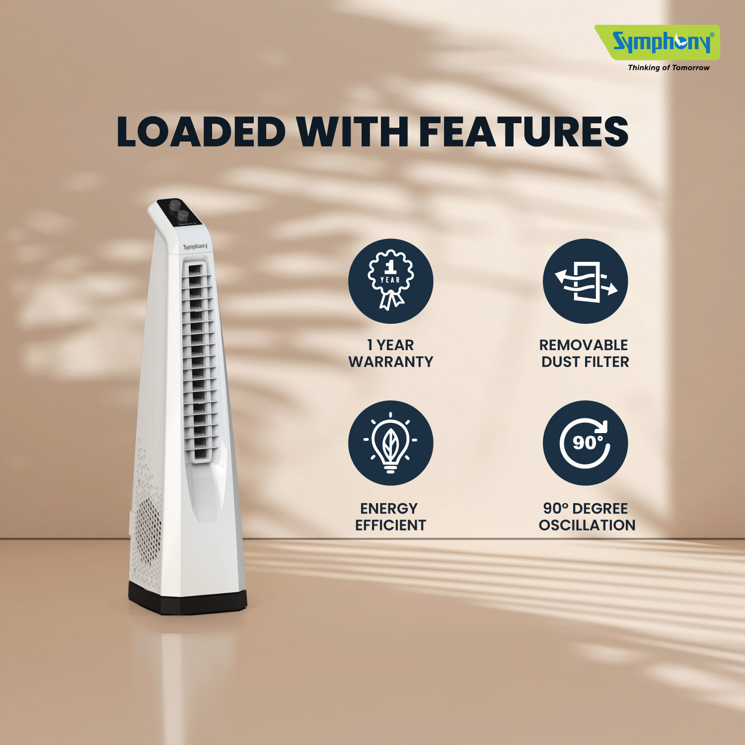 सिम्फनी एयर कूलर कार्बन फुटप्रिंट को कम करते हैं, जो प्रति वर्ष 14 पेड़ लगाने के बराबर है और एक हरित और ठंडा भविष्य के लिए इंजीनियर किए गए हैं।