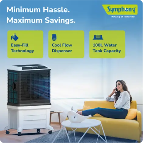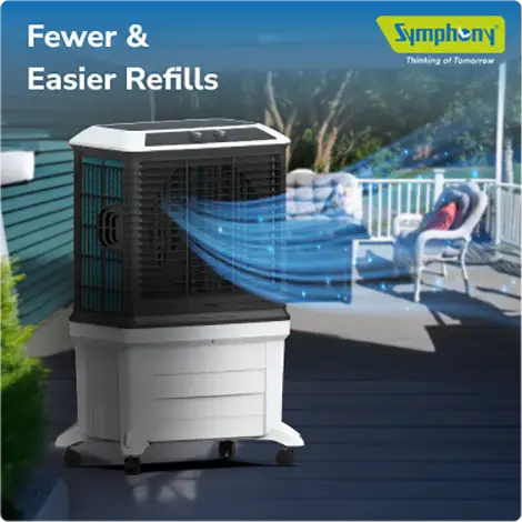 Symphony air coolers reduce carbon footprint that's equivalent to planting 14 trees per year and are engineered for a greener and cooler tomorrow.