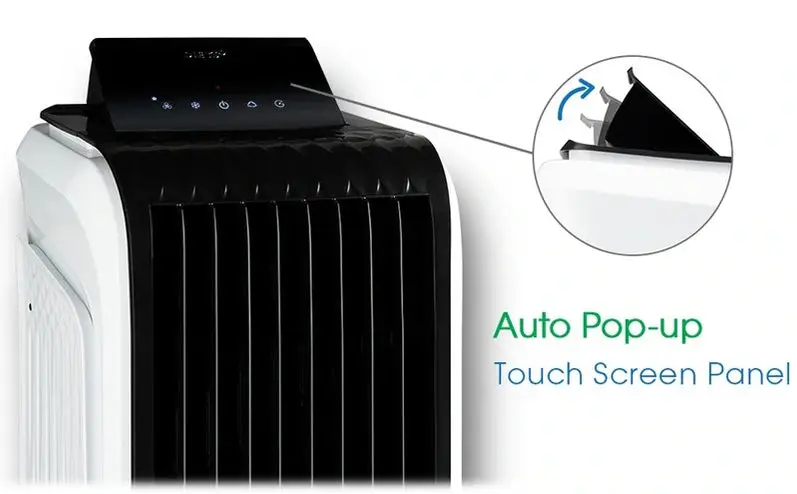 The cooler is power-packed with chic features such as automatic pop-up touch screen control that ensures great ease and convenience whereas a magnetic remote control provides full control to set the temperature to your liking while in use.