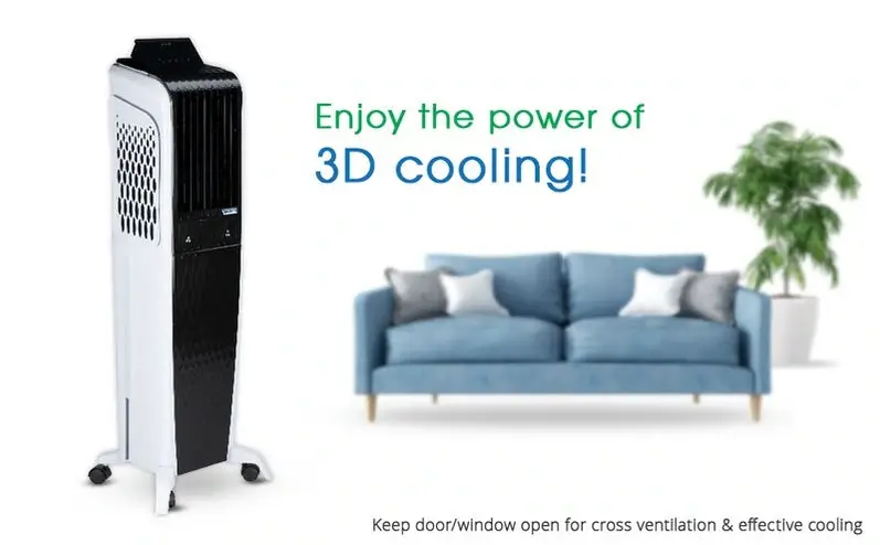 Mimic the comfort of a cool breeze in your home with the Symphony Diet 3D. The supercool air cooler has ergonomically designed fans that enable maximum air throw. This energy-efficient device consumes very low power and is inverter-compatible.