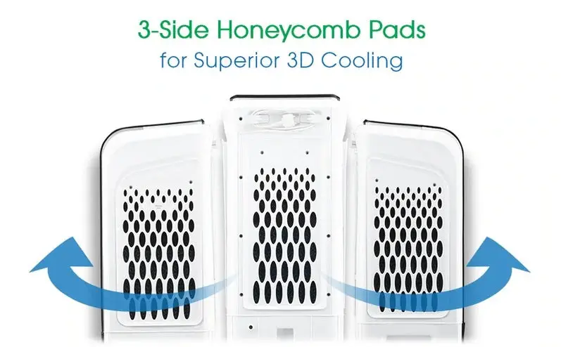 Honeycomb pads elevate the water retention capacity, and hence the hot outside air transforms into cool humid air very quickly, resulting in superior 3D cooling.