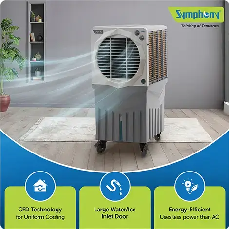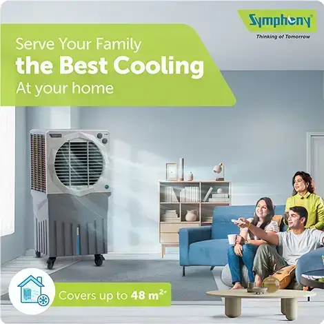 Symphony air coolers reduce carbon footprint that's equivalent to planting 14 trees per year and are engineered for a greener and cooler tomorrow.