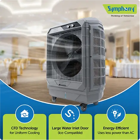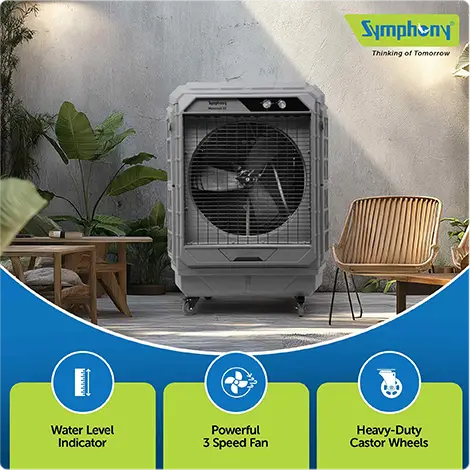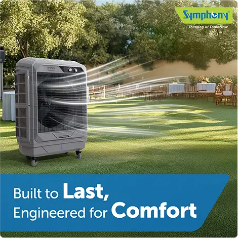 Symphony air coolers reduce carbon footprint that's equivalent to planting 14 trees per year and are engineered for a greener and cooler tomorrow.