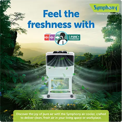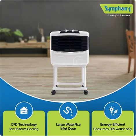 Symphony air coolers reduce carbon footprint that's equivalent to planting 14 trees per year and are engineered for a greener and cooler tomorrow.