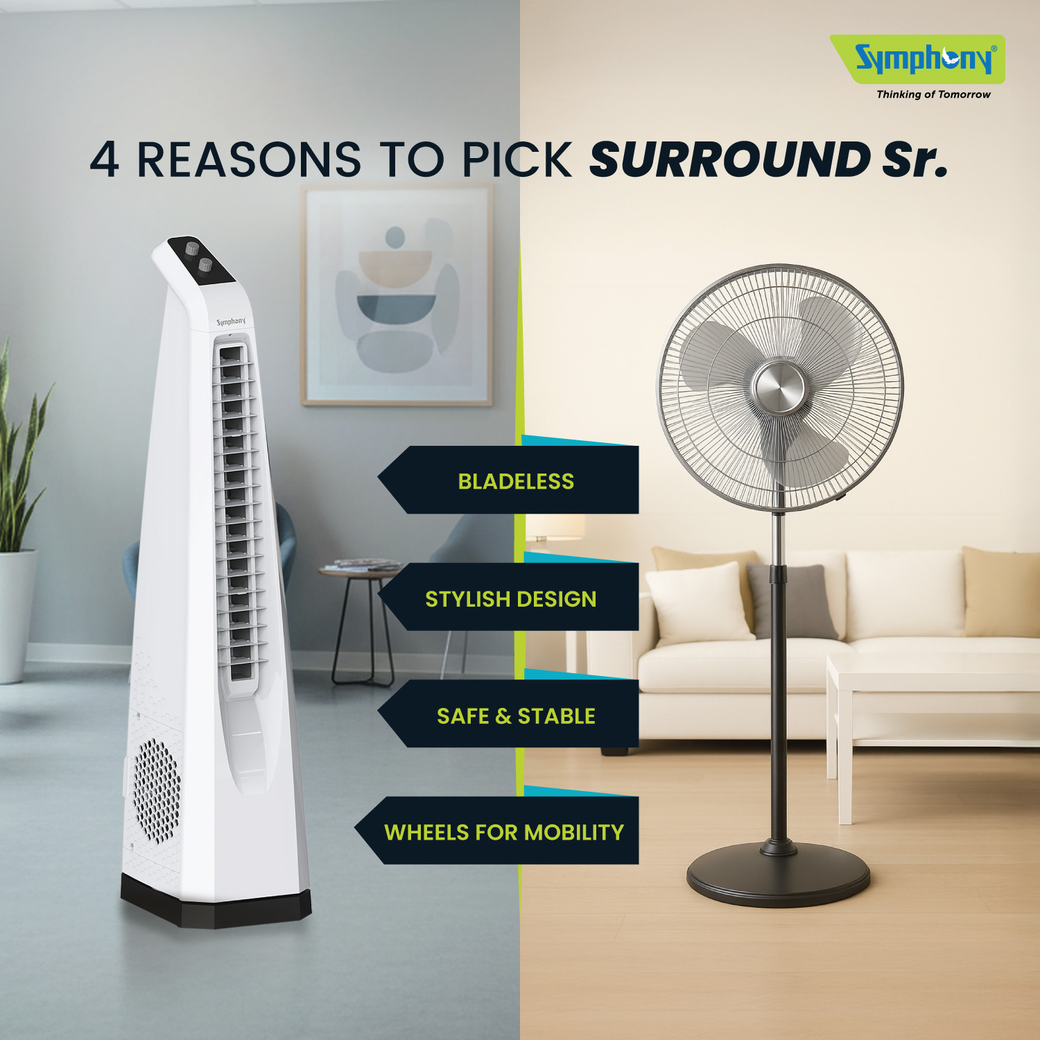 Symphony air coolers reduce carbon footprint that's equivalent to planting 14 trees per year and are engineered for a greener and cooler tomorrow.