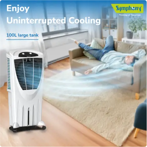 Symphony air coolers reduce carbon footprint that's equivalent to planting 14 trees per year and are engineered for a greener and cooler tomorrow.
